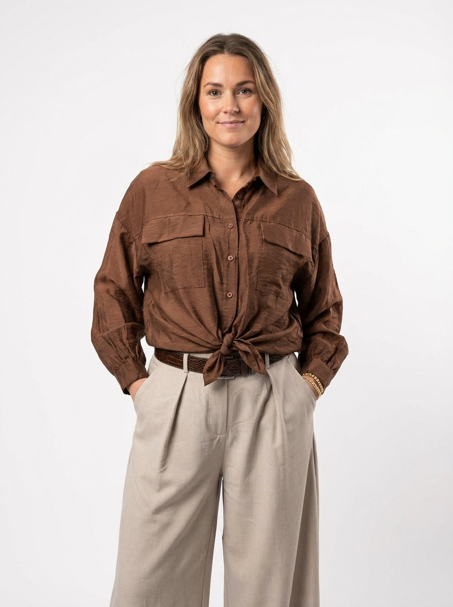 Blouse Fleur is een stijlvolle blouse gemaakt van een Tencel mix met slub garen, wat zorgt voor een speelse, natuurlijke structuur in de stof.